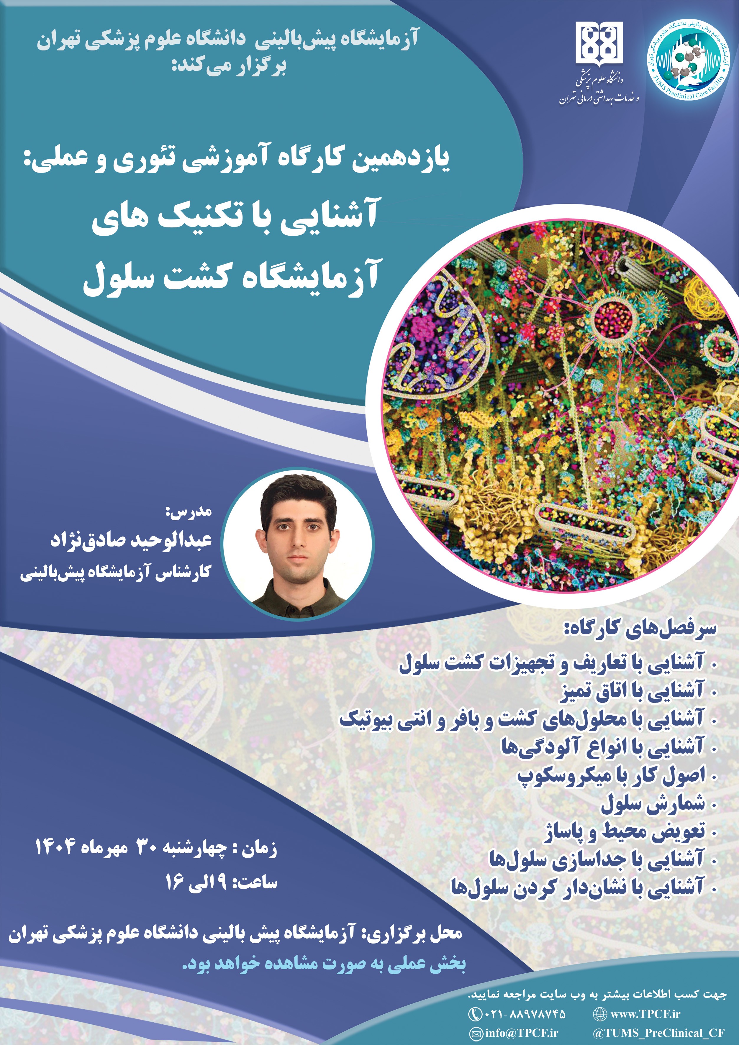 یازدهمین کارگاه آموزشی تئوری و عملی: "آشنایی با تکنیکهای آزمایشگاه کشت سلول"